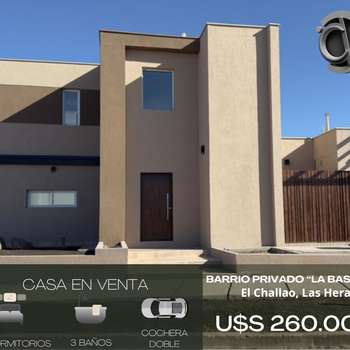 «CARINA DROZD gestiones inmobiliarias VENDE»: Hermosa CASA MUY LUMINOSA!!! EN COMPLEJO CERRADO «ALTOS CORDILLERANOS II». RUTA PROVINCIAL 34. Ingreso a LAVALLE a 1 km. estacion de servicio Axion y Ruta Nacional N° 40. Impecable! Muy Luminosa!!. Desarrollada en 1 planta. Orientación Sur. SUPERFICIE: 640 m2 Terreno , 226 m2 cubiertos- Consta de: Amplio ESTAR COMEDOR COCINA , con amoblamientos de cocina, griferia monocomando- ESTUDIO – BAÑO completo – 2/3 DORMITORIOS (1 con BAÑO en suite)- GALERIA Semicubierta con Churrasquera, horno de barro- JARDIN. parquizado con riego por aspercion con luminarias, PISCINA. LAVANDERIA con bacha e instalaciones para lavarropa y termotanque, BAÑO completo. COCHERA TRIPLE cubierta. Tiene Luz, agua, pozo septico, gas envasado. Carpinterias de aluminio con rejas, pisos de porcellanato, Techo de madera ( rollizos y machimbre) VALOR U$S 90.000- . ESCRITURACION INMEDIATA. Escucho PROPUESTAS por pago contado- FINANCIACION a conversar- PERMUTA por vehiculo- Apto CREDITO.